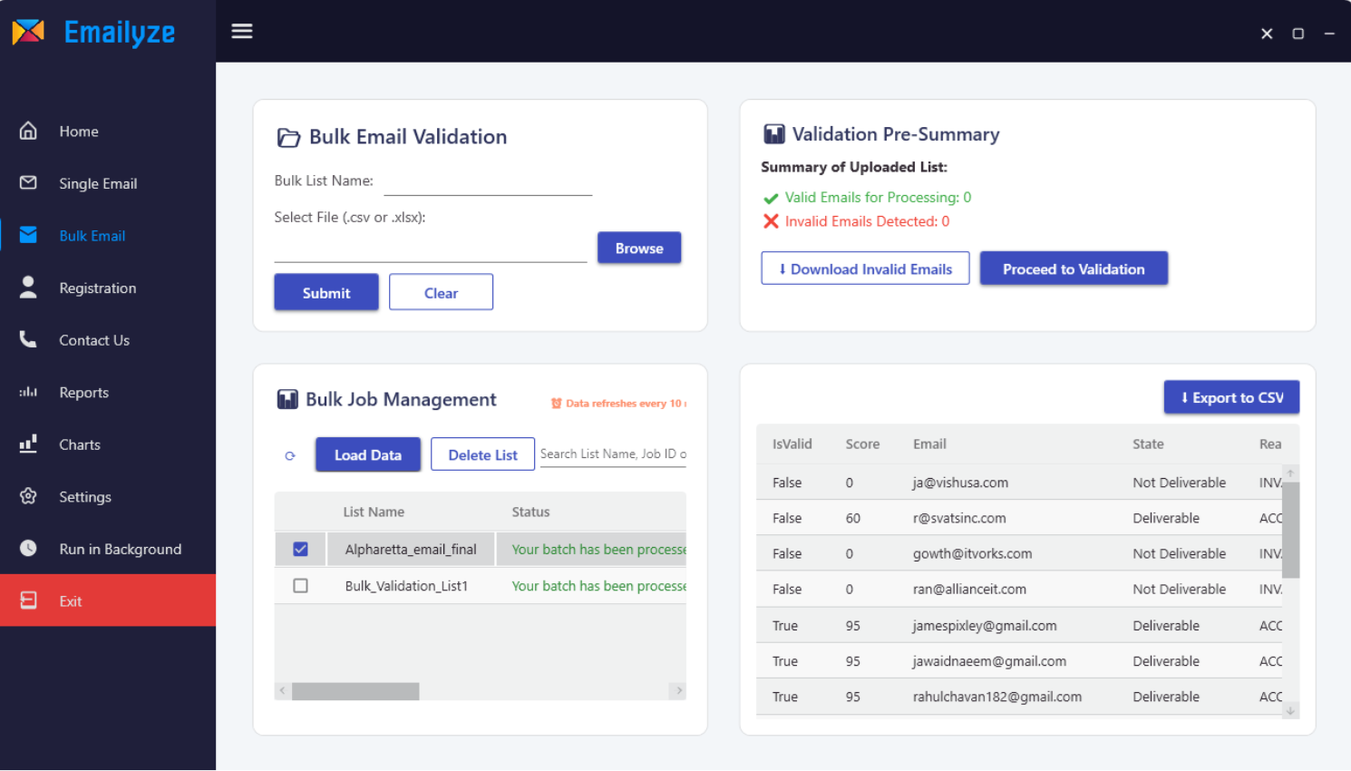Single or Bulk Email Validation